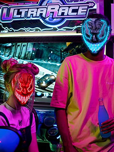 Perfect Holiday Costumes – Best Halloween festival face mask gift choice for your circle of relatives, friends and kids for Halloween fun. We offer our Halloween Led light up masks 30days refund and Quality Satisfaction Guarantee for any unsatisfactory or manufacturing defect as well.