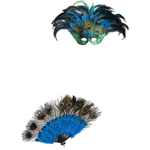 Package includes: 1 Peacock Fan; 1 Peacock Masquerade Mask – fits so much adults