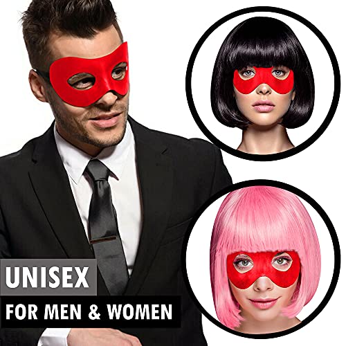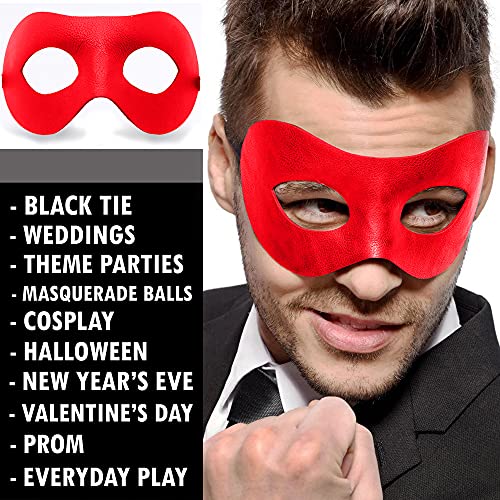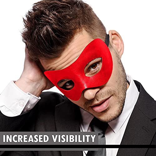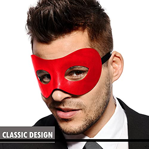 MORE COMFORT : Not only are the materials for our red men masquerade mask classic and refined, but the flexible inner frame ensures more comfort for longer wear. Additionally, the black eye mask adult has a large eye contour for more visibility.