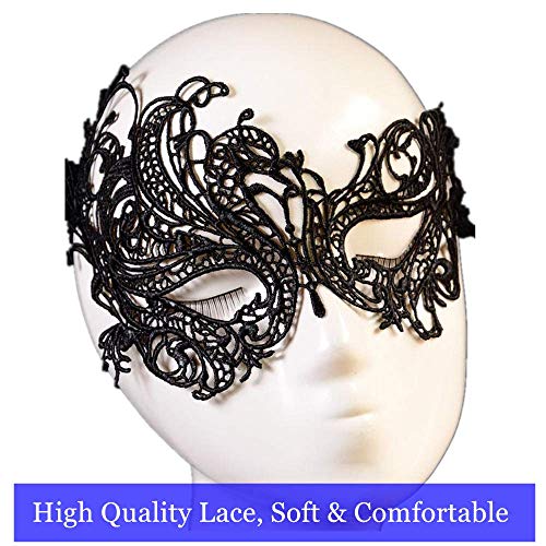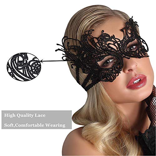 Easy tie and lightweight,comfortable elastic lace face mask for Halloween/Valentine’s carnivals, masquerade, masquerade cosplay,mardis gras, party ball,night club,costume cosplay party ,wedding reception,theatre production,masquerade dance party,costume party,and so on