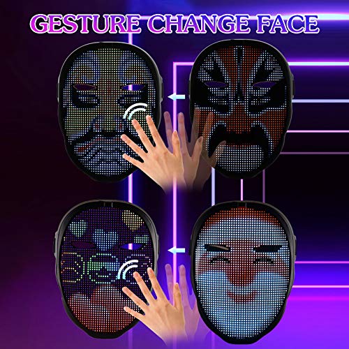 【Automatic Induction Switch Luminous Mask】LED mask has 45 dynamic display modes and 70 static display images, LED mask can also be set to a single color, flash, gradient, smooth and multi-color. Press the power button, and then cover the sensor switch with the hand, when display '' OK '' on the screen, then can use gestures to change the screen picture