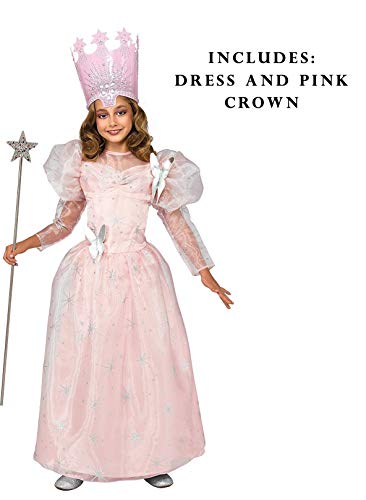 The same fabric is used on both long and short adult sizes of this dress, makes a fun mother/daughter, niece/aunt, big sister/little sister costume combination. The Wizard of Oz is a perennial favorite, get your family and friends together for a fun group costume. Follow the yellow brick road to Officially Licensed Wizard of Oz costumes in sizes and styles for all the family. This Glinda the Good costume dress features a pink poly-satin dress with sheer overlay with silver stars, the sheer fabric is used to create the mutton sleeve and silver fabric butterflies are added to create the aura of Good. The tall plastic crown has adjustable sizing with hook and loop closures. IMPORTANT: Costumes aren’t sized the same as clothing, consult Rubie’s Child Size Chart and recent reviews before making selection; the sleeves on this dress are form-fitting, if your child is near the top of the size range you may need to move up a size or imagine the adult size Small. Rubie’s also offers Dorothy, Scarecrow, Cowardly Lion, Tin Man, and the Wicked Witch of the West (along side Flying Monkeys) in sizes from baby to adult in addition to pet costumes. Rubie’s Costume has been family-owned, family-run, family-focused, and based in New York since 1950.